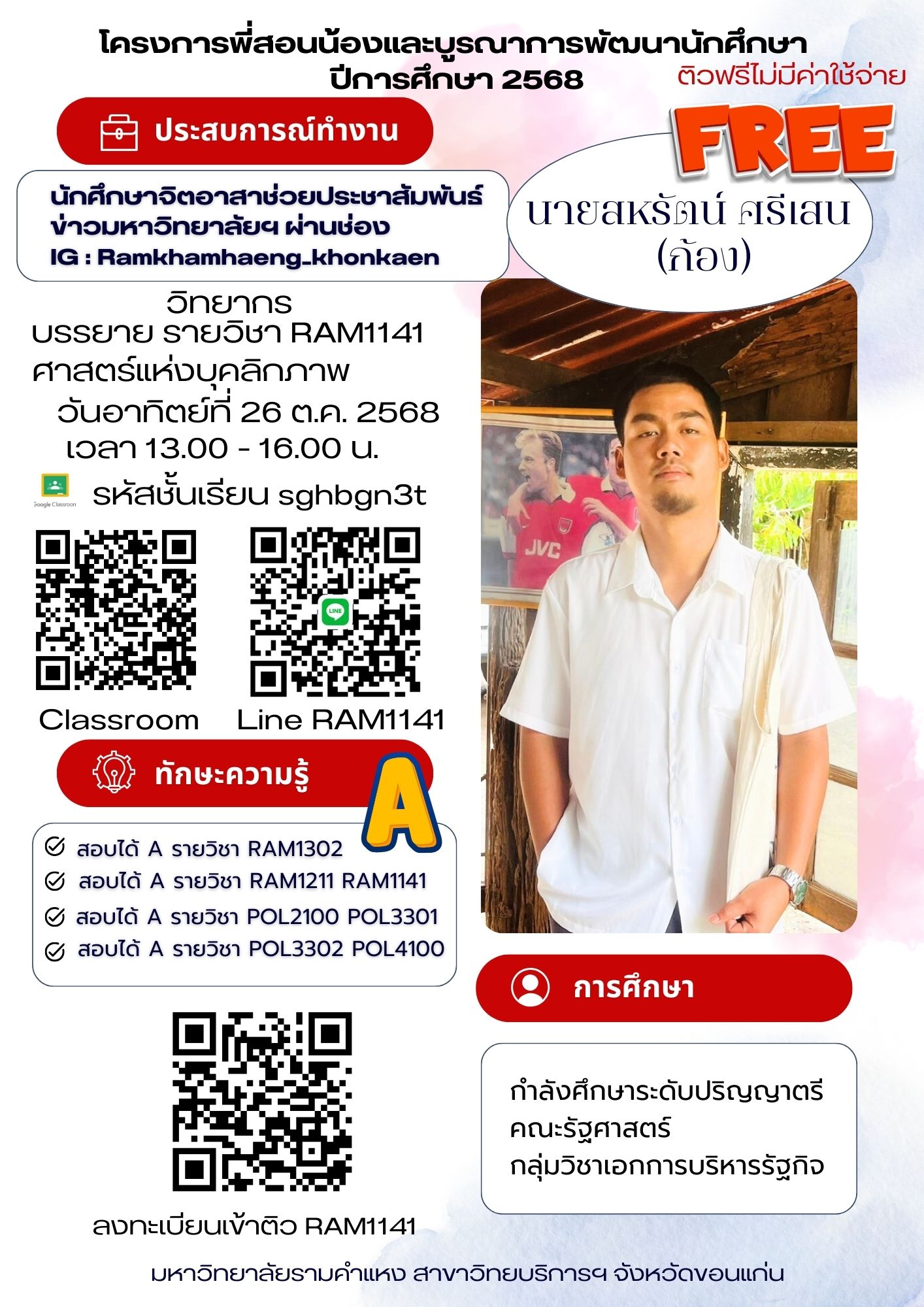 สมัครที่ มหาวิทยาลัยรามคำแหง แขวงหัวหมาก เขตบางกะปิ วันที่ 14 – 17 พฤศจิกายน 2567