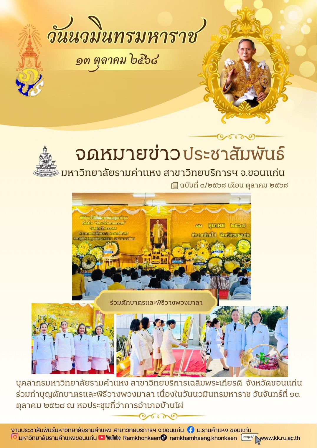 กิจกรรมวันปิยมหาราช วันที่ 23 ตุลาคม 2567 admin 20/11/2024 Continue Reading Previous Previous post: กิจกรรมวันนวมินทรหาราช วันที่ 13 ตุลาคม 2567 Next Next post: ลงทะเบียนเรียนปริญญาตรีส่วนภูมิภาค ภาค 2/67 [รอบล่าช้า)📌มีค่าปรับ 100 บาท☑️วันที่ 25-26 ธันวาคม 2567
