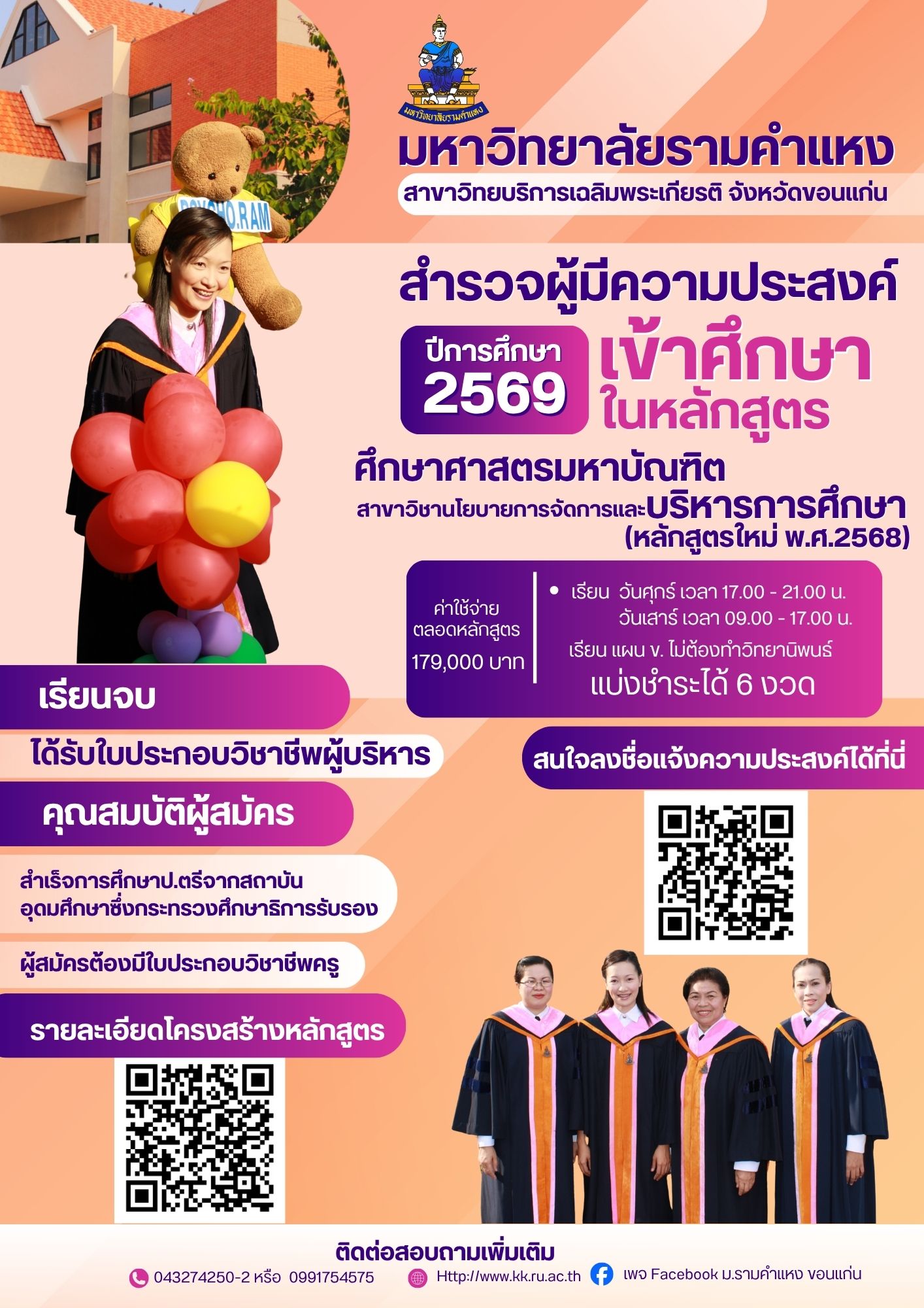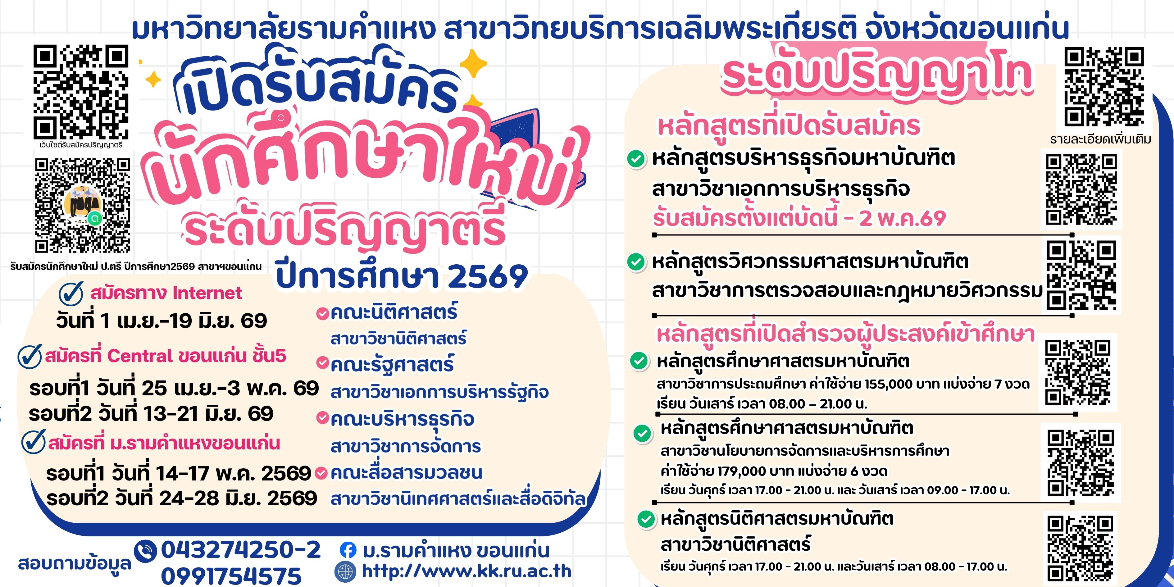 ศิษย์เก่าดีเด่นมหาวิทยาลัยรามคำแหง สาขาวิทยบริการเฉลิมพระเกียรติ จังหวัดขอนแก่น admin 09/01/2025 Continue Reading Previous Previous post: ประชาสัมพันธ์ห้องบรรยายสรุป ระดับปริญญาตรีภาคเรียนที่ 2 ประจำปีการศึกษา 2567สัปดาห์ที่ วันที่ 4 – 5 มกราคม 2568Next Next post: ประชาสัมพันธ์ห้องบรรยายสรุป ระดับปริญญาตรีภาคเรียนที่ 2 ประจำปีการศึกษา 2567สัปดาห์ที่ 8 วันที่ 11 – 12 มกราคม 2568