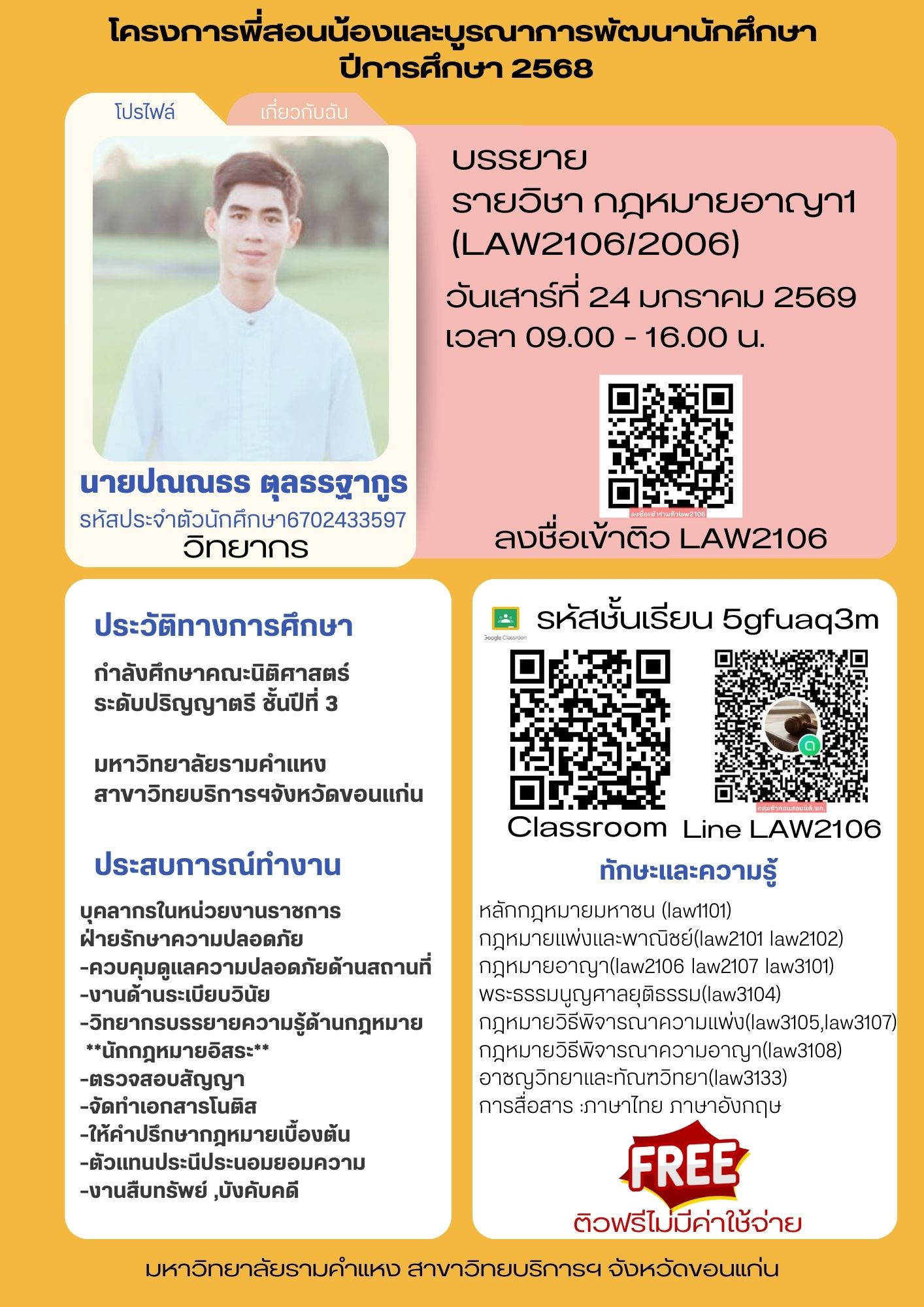 ตารางบรรยายวันจันทร์ – ศุกร์ ระดับปริญญาตรี ภาคเรียนที่ 2/2568 ผ่านระบบ Cyber Classroom