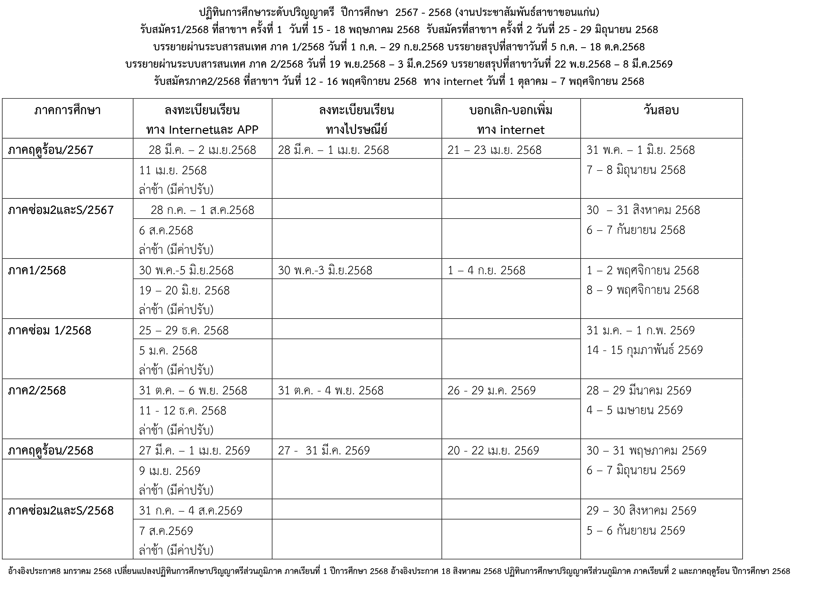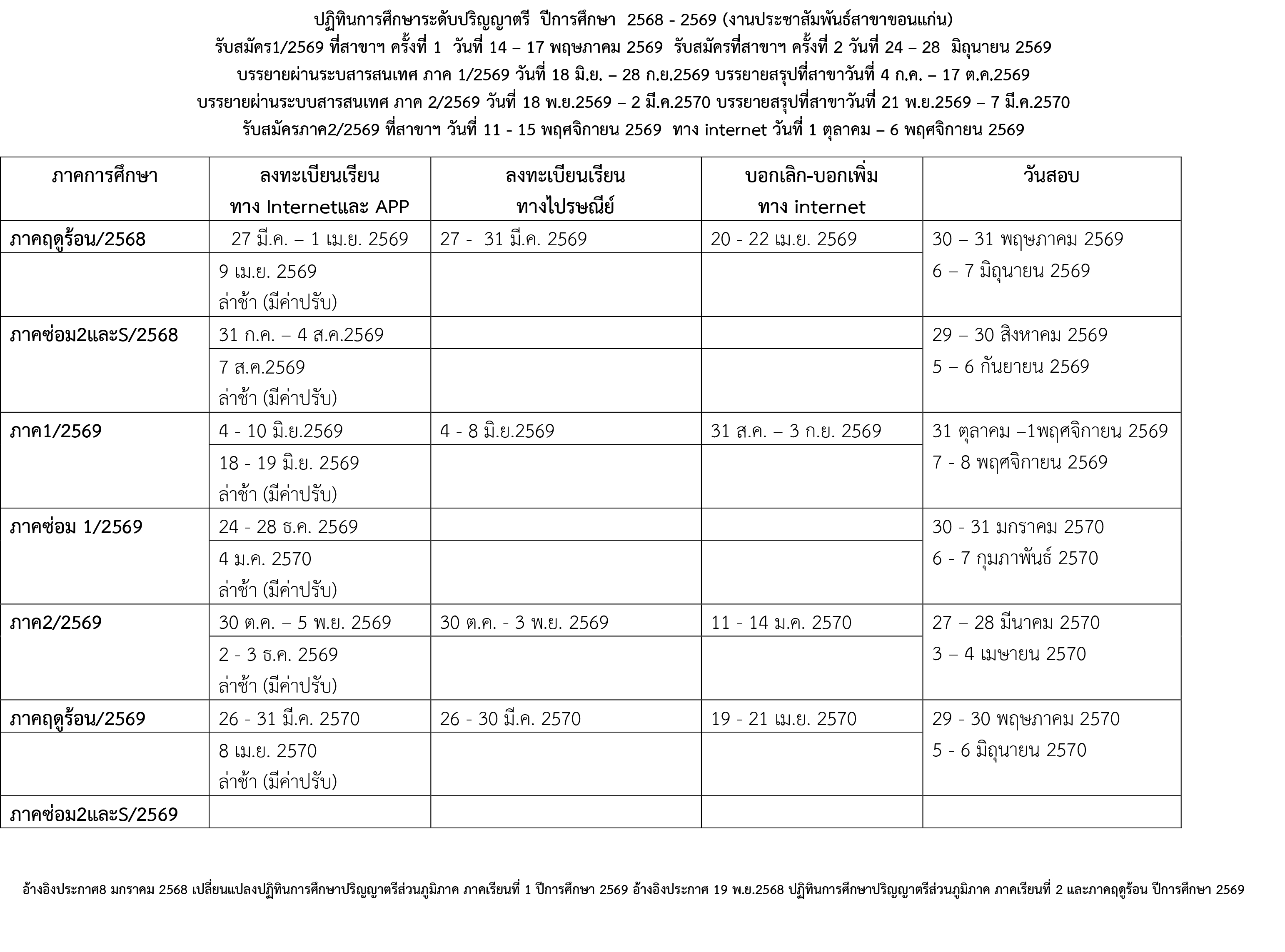 ปฏิทินการศึกษาระดับปริญญาตรีและPre-degree ปีการศึกษา 2568 – 2569